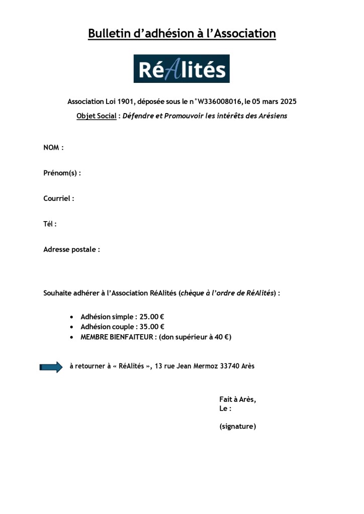 Pour suivre les actions de l’association, pour soutenir la seule liste d’alternance et y participer, adhérez à RéAlités !